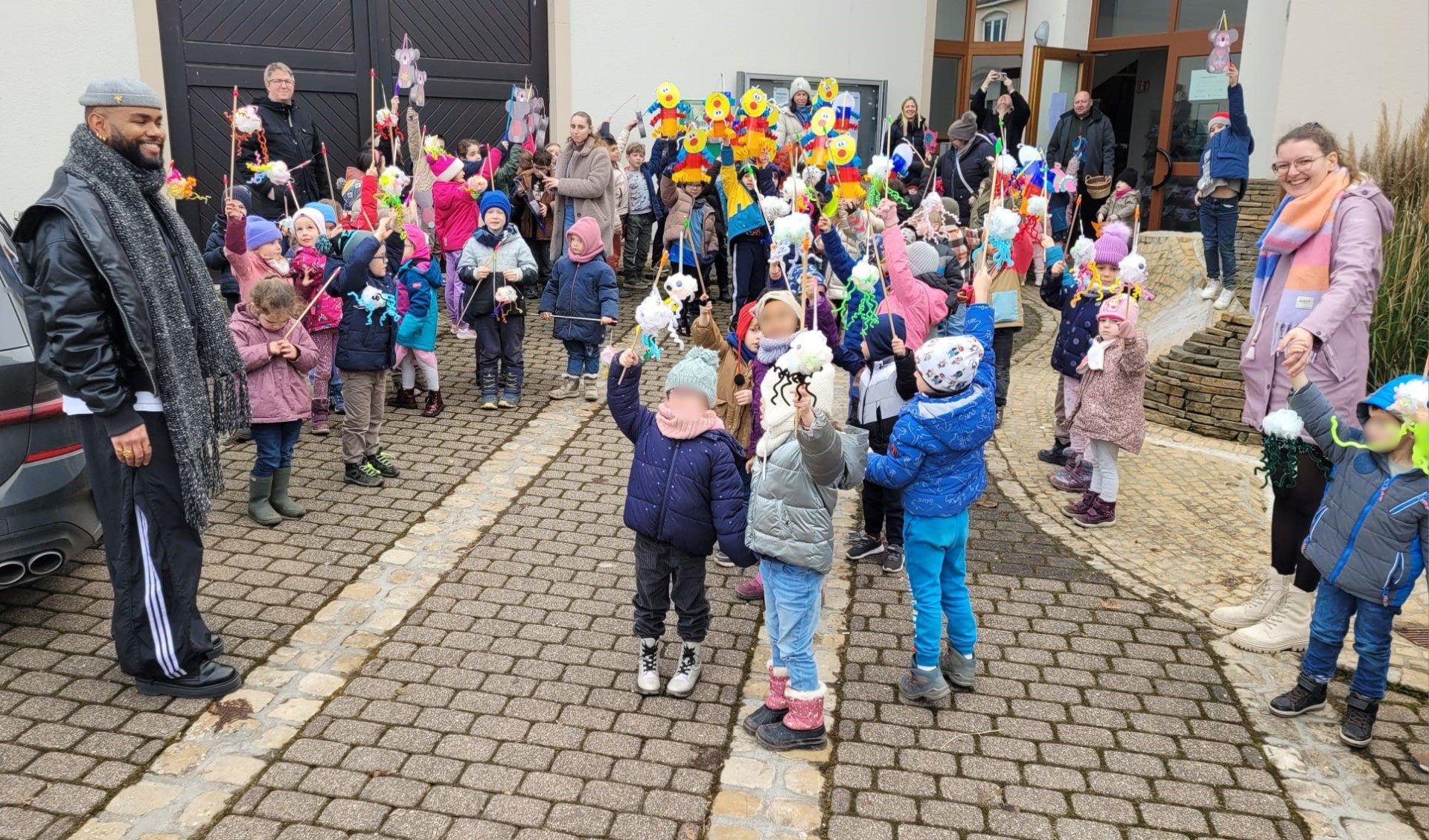 Ce lundi, les enfants des cycles 1 et 2 sont passés à la Commune pour célébrer la tradition du "Liichten". Dès la matinée, les tout‑petits de la crèche ont apporté une touche de magie grâce à leurs voix vives et lumineuses.