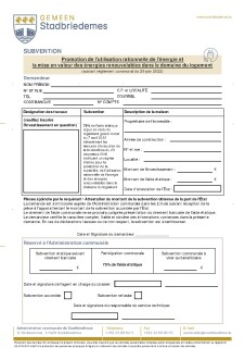 Formulaire de demande de subside en vue de la promotion de l'utilisation rationnelle de l'énergie et la mise en valeur des énergies renouvelables dans le domaine du logement